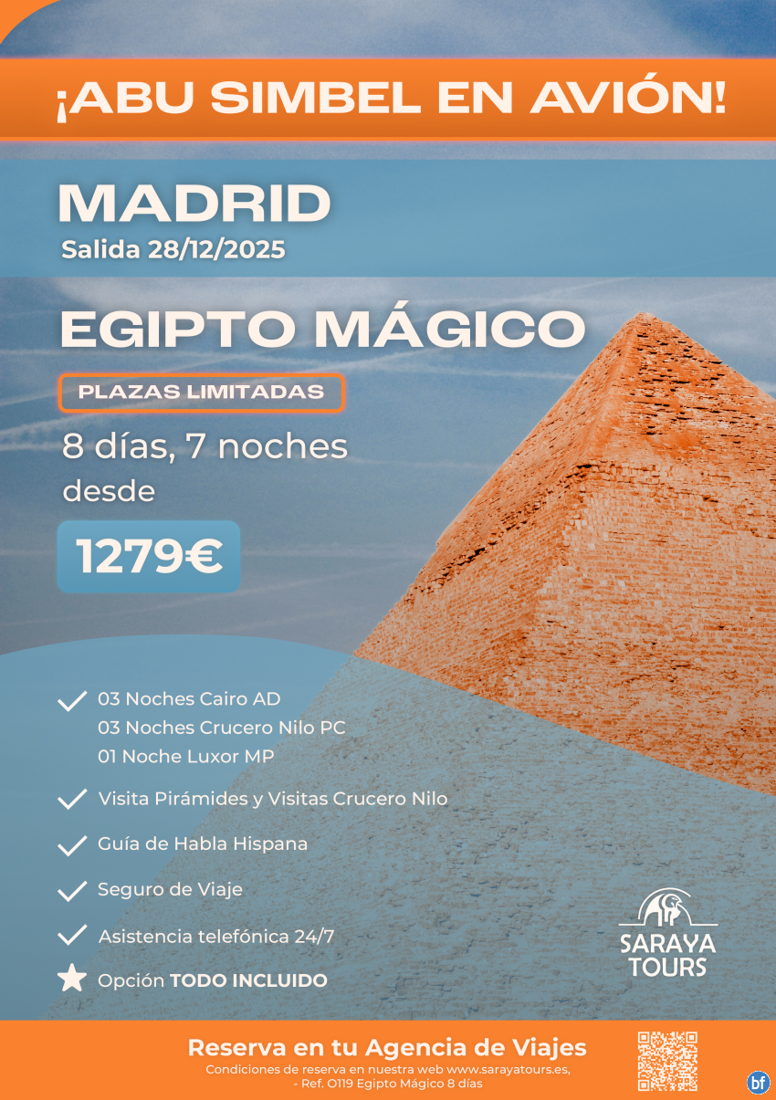 Exclusivo! Egipto Mágico con Abu Simbel en Avión Salida MADRID 28/12/25 Plazas Limitadas